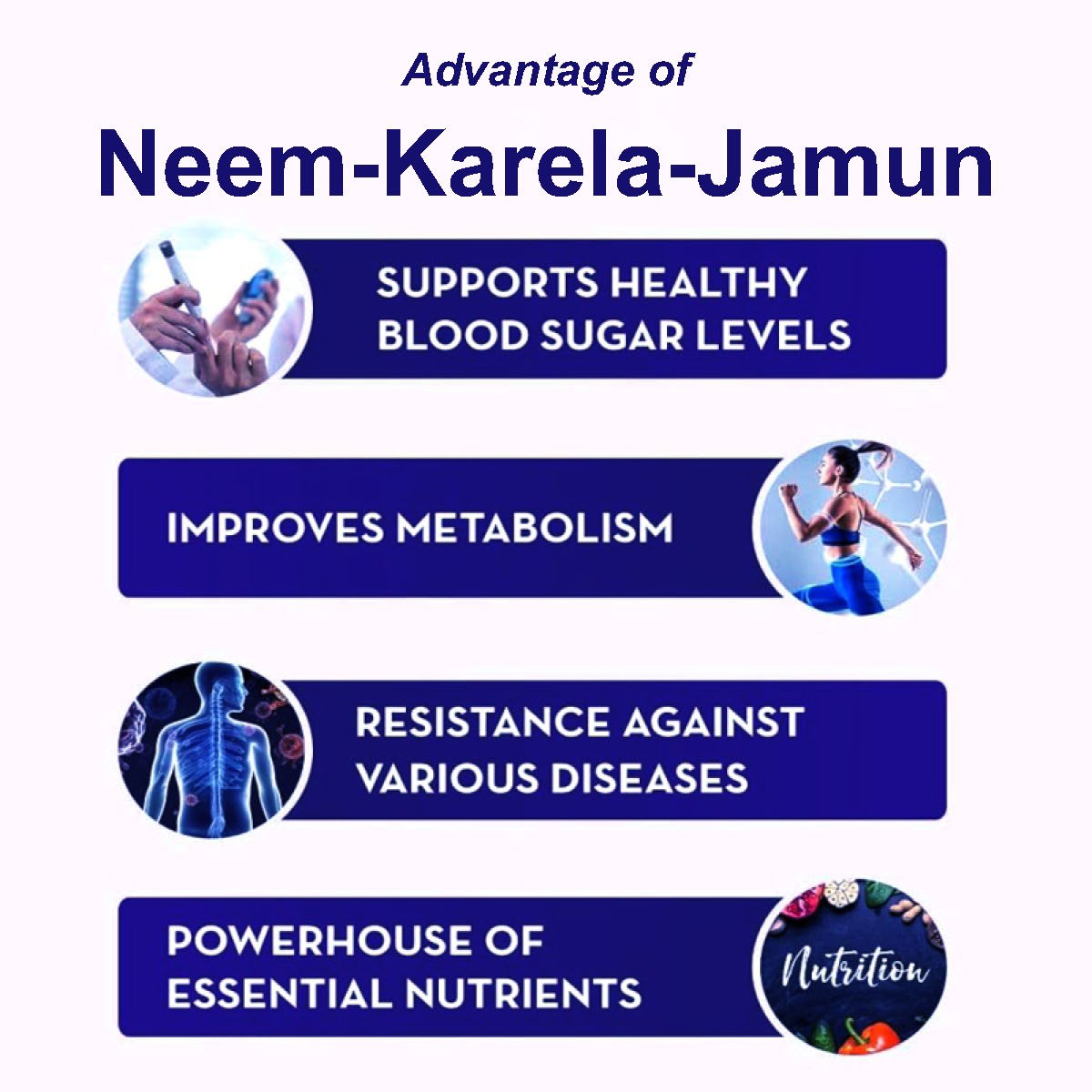 • NATURAL BLEND: A unique combination of Neem, Karela (Bitter Gourd), and Jamun juice in a convenient 500 ml bottle