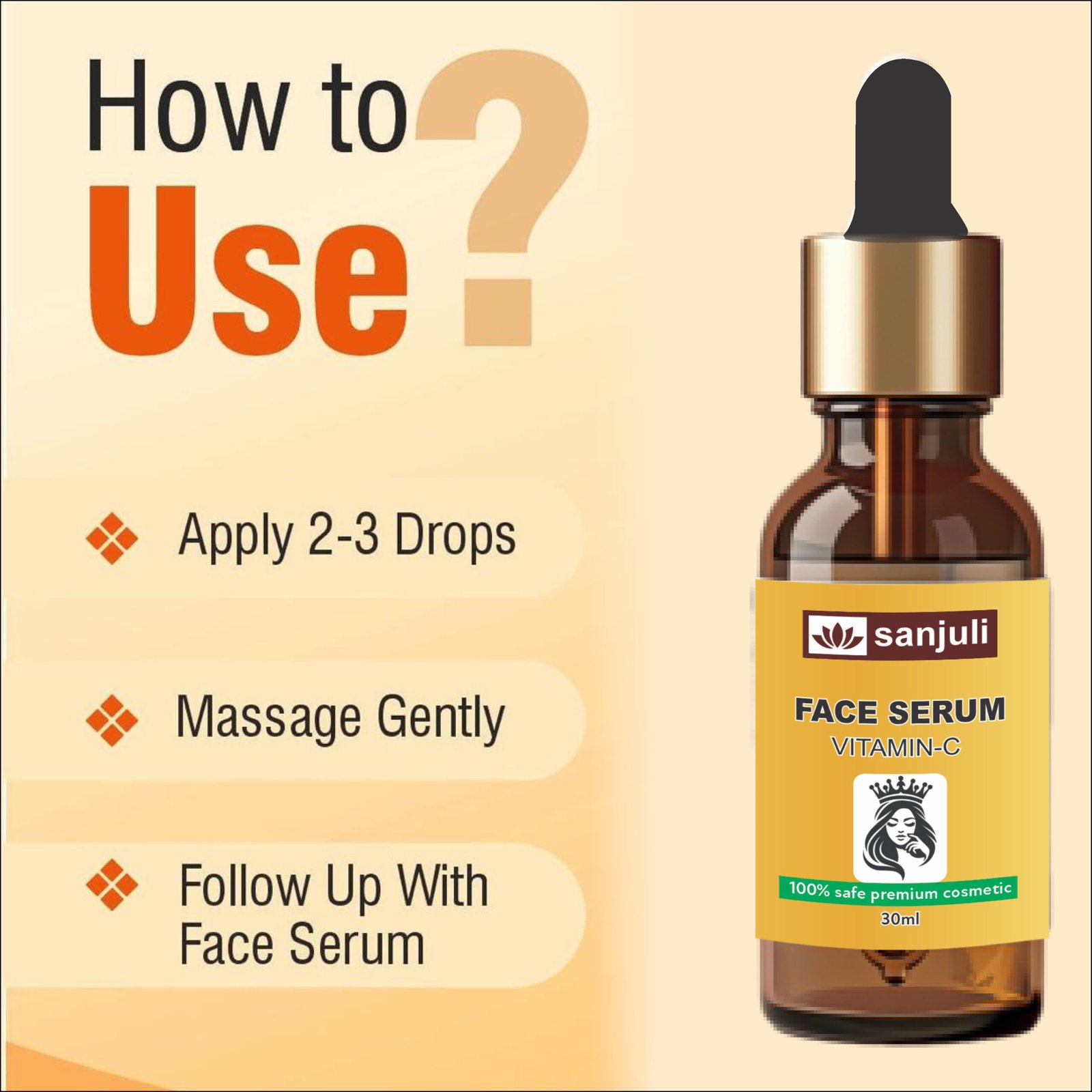 Apply a few drop to cleansed face & gently massage until absorbed. Use daily for best results. | Key Ingredients- Sanjuli 20% Vitamin C face serum with Hyluronic acid and Vitamin E