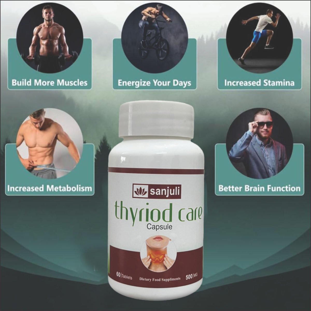 | Description | Sanjuli Thyroid Care Capsules – Natural Supplement for Thyroid Health, Energy, Metabolism & Mood Stability | 60 Tablets | 500mg | Sanjuli Cough Syrup | Non Drowsy Ayurvedic Cough Reliever, Fast Relief from Cough, Sore Throat & Cold for Adult | Pack(each) | Sanjuli Hair Care Capsules – 500mg | Natural Hair Growth Supplement for Men & Women | 60 Capsules | Reduces Hair Fall, Promotes Strong & Healthy Hair | For Immune Health, Respiratory Health, Digestive Health | Fat Loss Formula Juice | Sanjuli Omega 3-6-9 Capsules | Triple Strength Essential Fatty Acid Supplement for Heart, Brain, and Skin Health – 60 Softgels |